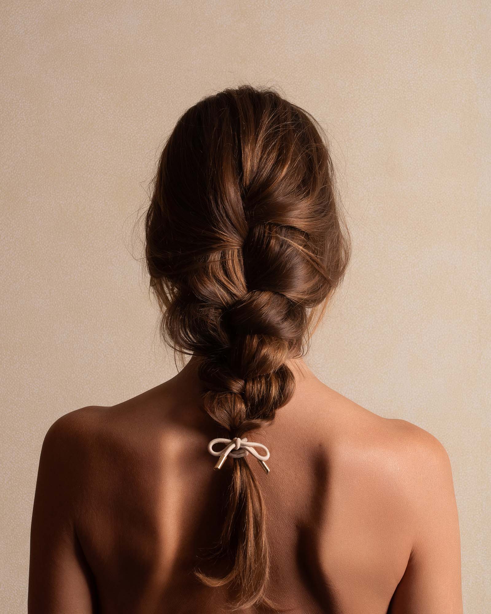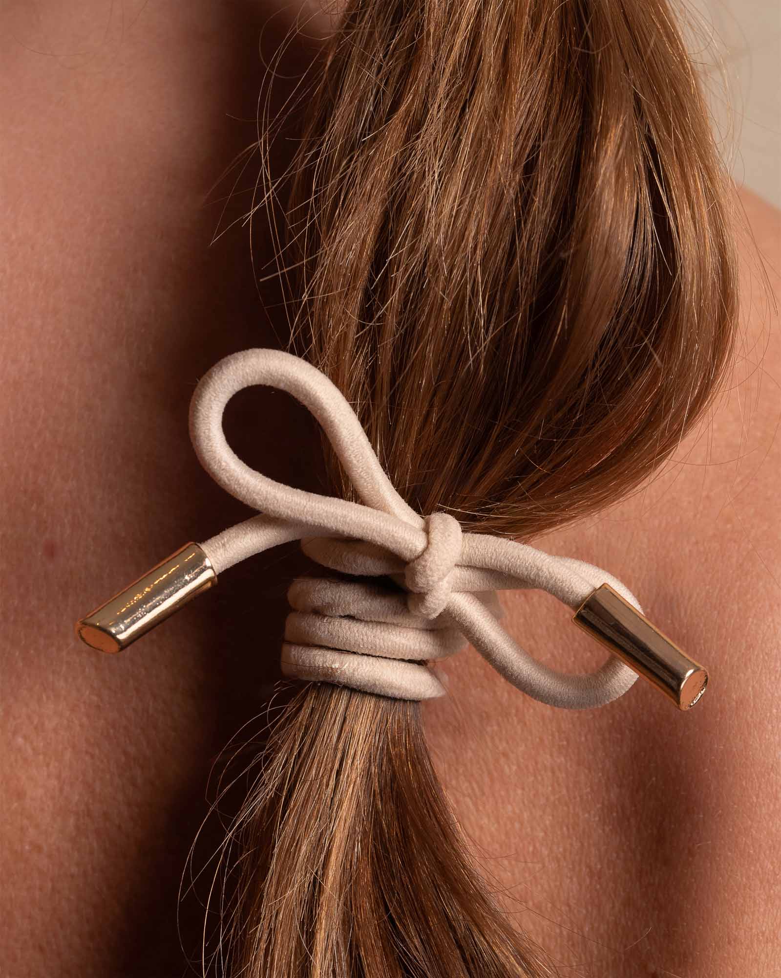 Hair Tie Bow Metal Plain Cream