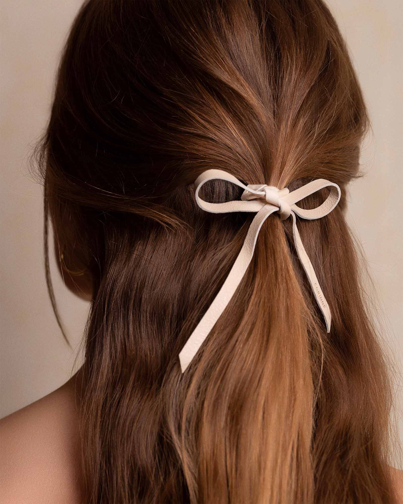 This leather hair band is designed with a short, narrow shape and a cream color for a stylish and versatile look. Made with quality leather, it offers durability and comfort while keeping your hair in place. Perfect for adding an elegant touch to any outfit.